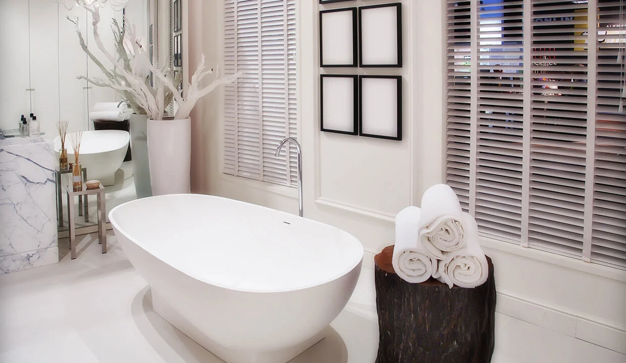 Anti-skid Ceramic tiles on floor and ceramic wall tiles up to 7 feet height. White coloured branded sanitary fittings, Chromium plated taps , concealed plumbing