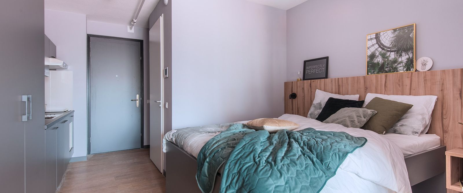 Ceramic tiled flooring, Granite counter top , Single bowl stainless steel kitchen sink with drain board and provisions for water purifier , electric hood , exhaust fan will be provided